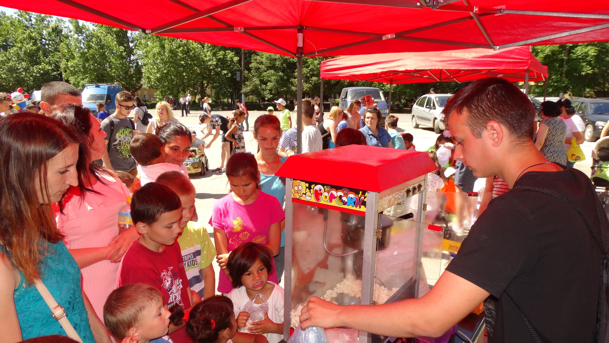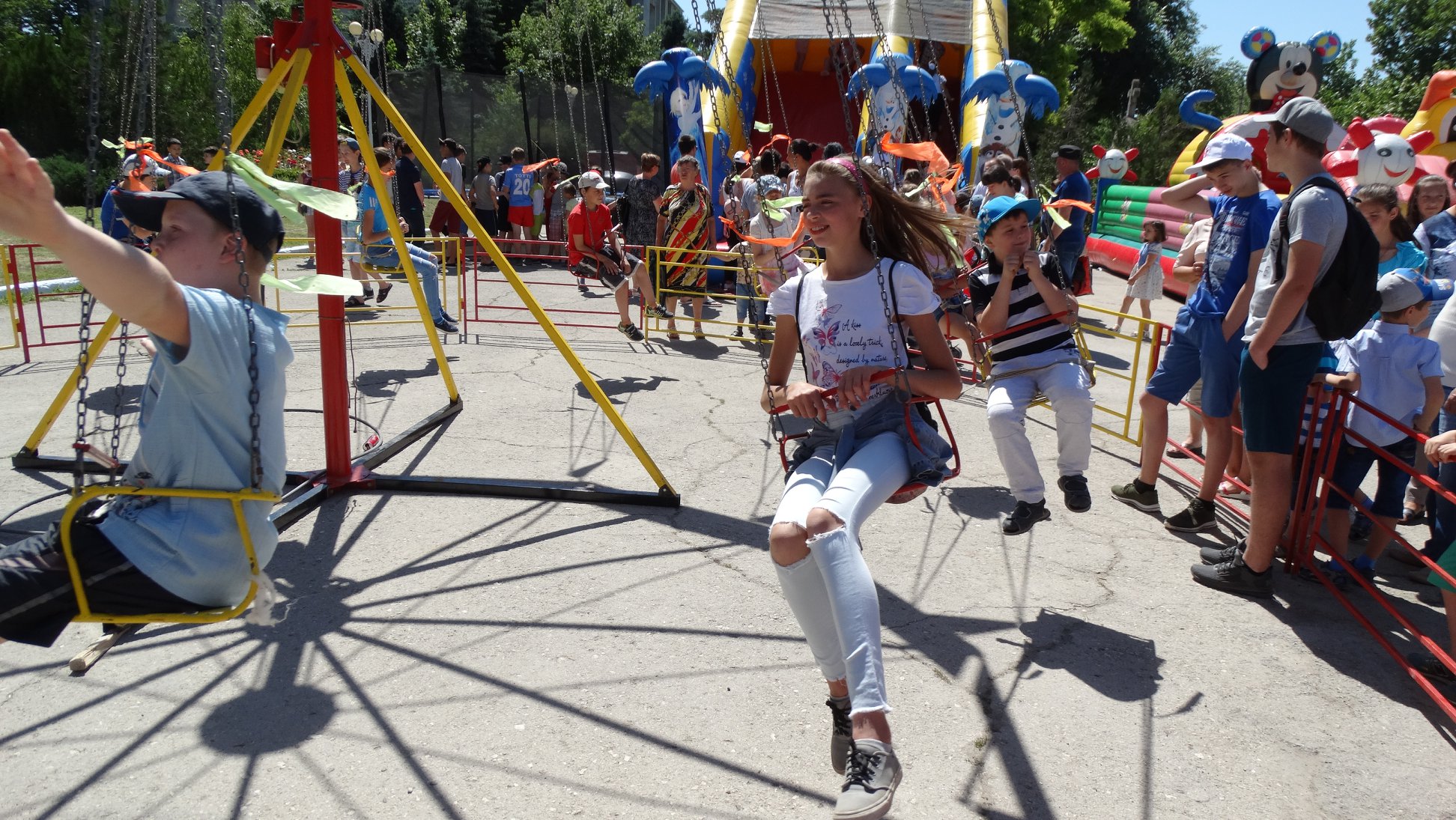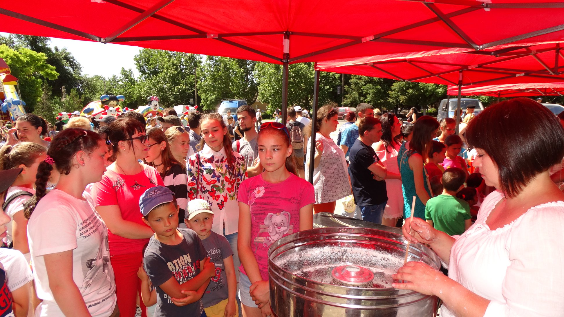 Все аттракционы : батут, горки, карусель и все угощения – совершенно бесплатно.